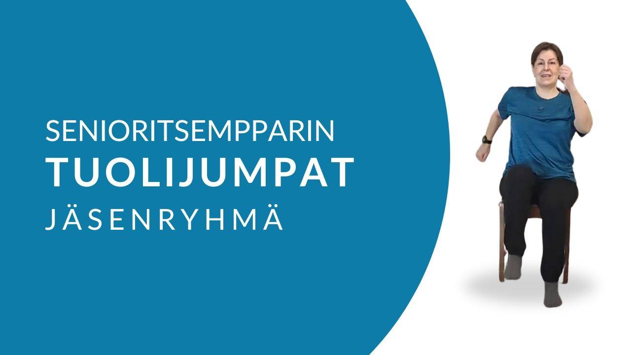 Kuntouttava viikottainen liikuntaohjelma suoraan kotiisi. Livejumpat & runsaat tallenteet. Tuolijumppiin yhdistetty hengitysohjaus ja aivoja aktivoivat harjoitukset vahvistavat tehokkaasti sekä liikunta- että toimintakykyä.